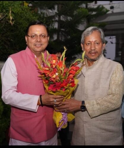 देहरादून : मुख्यमंत्री पुष्कर सिंह धामी ने पूर्व मुख्यमंत्री तीरथ सिंह रावत के आवास पर जाकर उनसे भेंट कर दीपावली...