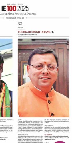 प्रतिष्ठित समाचार पत्र इंडियन एक्स्रपेस ने जारी की साल 2025 की रैंकिंग, 100 ताकतवर भारतीयों की लिस्ट में मुख्यमंत्री धामी 32वें स्थान पर
