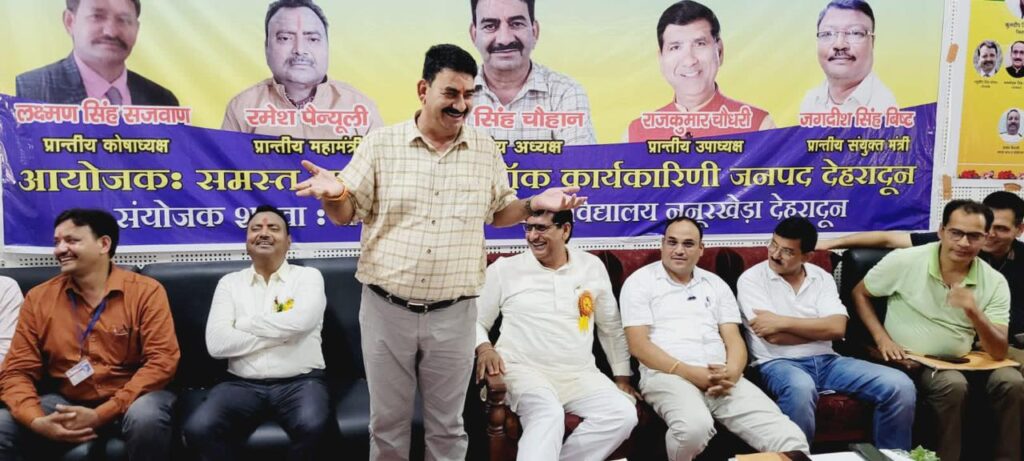 देहरादून: राजकीय शिक्षक संघ की प्रथम बैठक का आयोजन शनिवार को राजीव गांधी नवोदय विद्यालय देहरादून में हुआ। प्रथम सत्र में सभी ज़िला कार्यकारणीयों द्वारा प्रांतीय कार्यकारिणी का सम्मान किया गया।अगले सत्र की बैठक की अध्यक्षता प्रांतीय अध्यक्ष राम सिंह चौहान जी ने की एवं संचालन प्रांतीय मंत्री रमेश पैन्यूली ने की। सभी जनपदो ने मण्डल कार्यकारिणी के माध्यम से अपने अपने माँग पत्र प्रांतीय कार्यकारिणी को दिया।अध्यक्ष चौहान जी कहा की प्रांतीय कार्यकारिणी प्राथमिकताओं के आधार पर कार्य करेगी। हम प्रथम बैठक में सभी विषयों पर चर्चा ना कर प्रमुख मुद्दों पर ही वार्ता करेंगे।