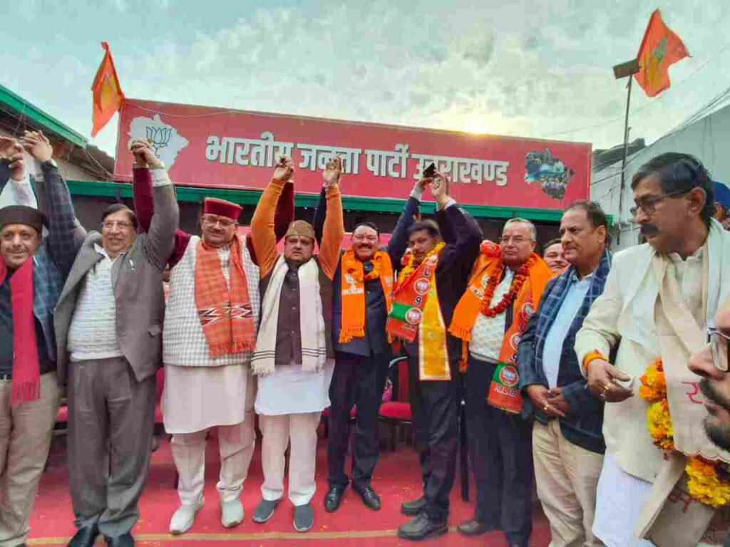 प्रदेश अध्यक्ष भट्ट और सीएम प्रतिनिधि के रूप में उपस्थित कैबिनेट मंत्री जोशी ने पूर्व विधायक एवं वरिष्ठ कांग्रेस नेता शैलेंद्र रावत, केदारनाथ से कुलदीप रावत, राजेंद्र कंडारी, देवप्रयाग पंचायत अध्यक्ष कृष्णकांत कोठियाल, प्रमुख जयपाल पंवार, रुद्रप्रयाग जिला पंचायत उपाध्यक्ष सुमंत तिवाड़ी के साथ पुरोला, घनसाली, टिहरी, देवप्रयाग, रुद्रप्रयाग, केदारनाथ के हजारों लोगों को पार्टी की सदस्यता दिलाई । इस दौरान सभी नवांगुत सदस्यों ने पीएम मोदी, सीएम धामी, प्रदेश अध्यक्ष भट्ट और पार्टी के जयकारों के बीच आतिशबाजी और ढोल बाजों के साथ जमकर जश्न मनाया।
