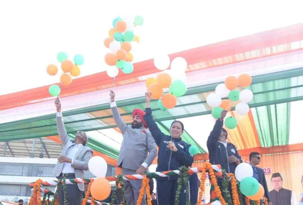 हल्द्वानी। आज हल्द्वानी में स्थित इंदिरा गांधी अंतरराष्ट्रीय स्टेडियम में न्याय पंचायत स्तरीय खेल महाकुंभ-2023 का कुंवरपुर न्याय पंचायत से राज्यपाल लेफ्टिनेंट जनरल(से.नि.) गुरमीत सिंह और नैनीताल जनपद प्रभारी व खेल मंत्री रेखा आर्या ने विधिवत शुभारंभ किया। वहीं इसके बाद खिलाड़ियों द्वारा शानदार मार्च पास्ट किया गया।इस दौरान विभिन्न स्कूली छात्र-छात्राओं ने सांस्कृतिक प्रस्तुतियां प्रस्तुत की।साथ ही इस दौरान न्याय पंचायत स्तरीय खेल महाकुंभ-2023 में खिलाड़ियों ने विभिन्न खेलों में शानदार प्रदर्शन किया, जिन्हें राज्यपाल गुरमीत सिंह और खेल मंत्री ने सम्मानित किया और सभी खिलाड़ियों को भविष्य के लिए शुभकामनायें दी।