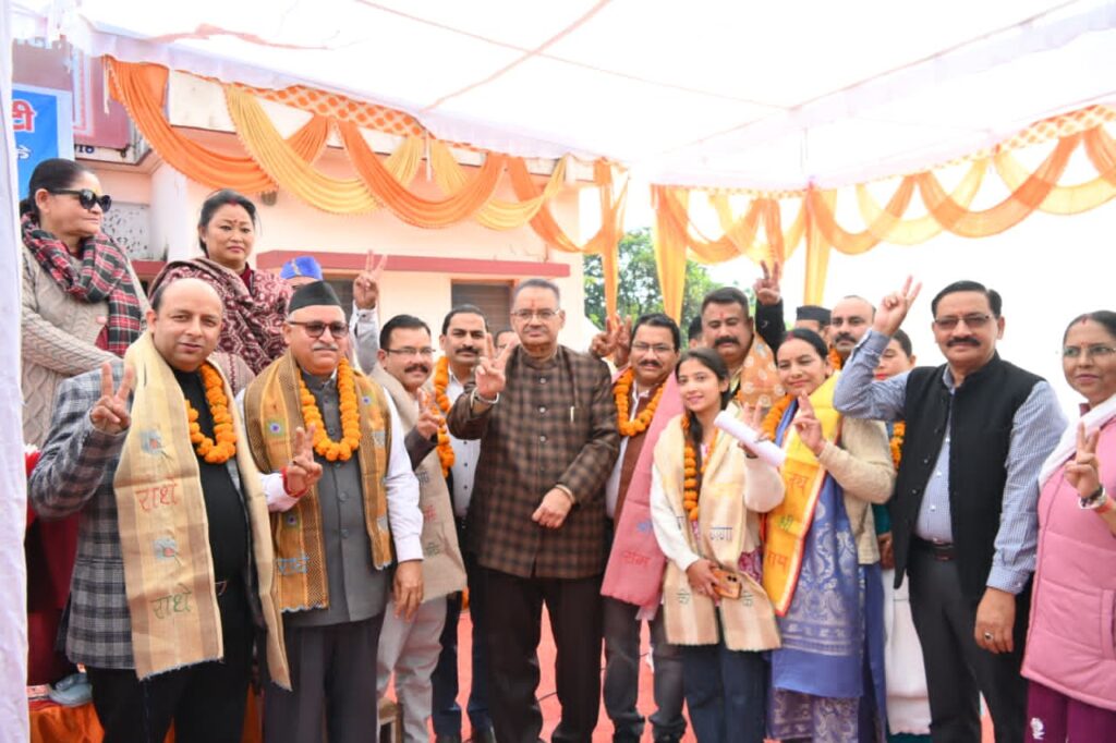शपथ ग्रहण समारोह के दौरान मंत्री गणेश जोशी की उपस्थिति में नव-निर्वाचित पदाधिकारियों ने अपने दायित्वों का ईमानदारी, पारदर्शिता और समर्पण के साथ निर्वहन करने की शपथ ली।